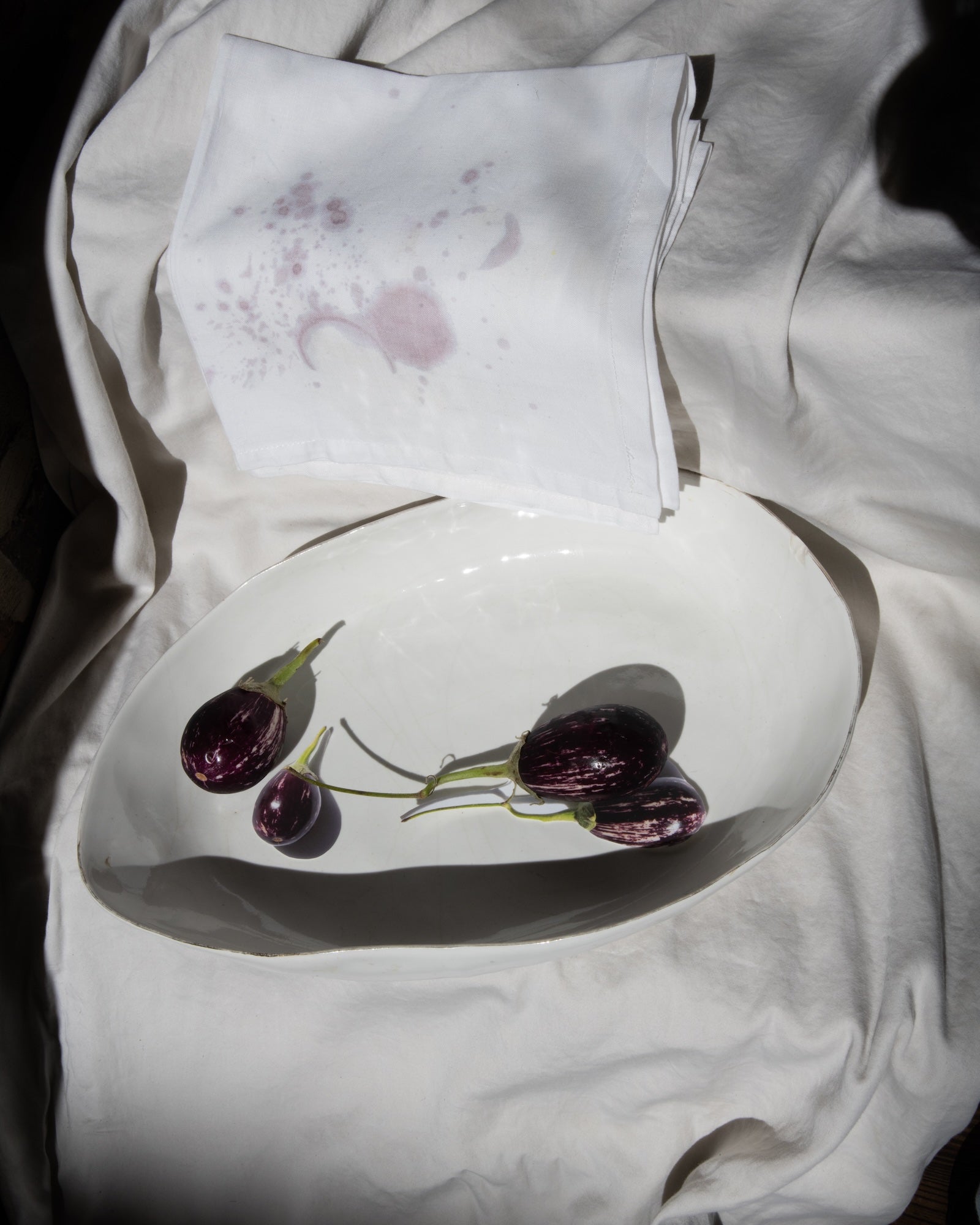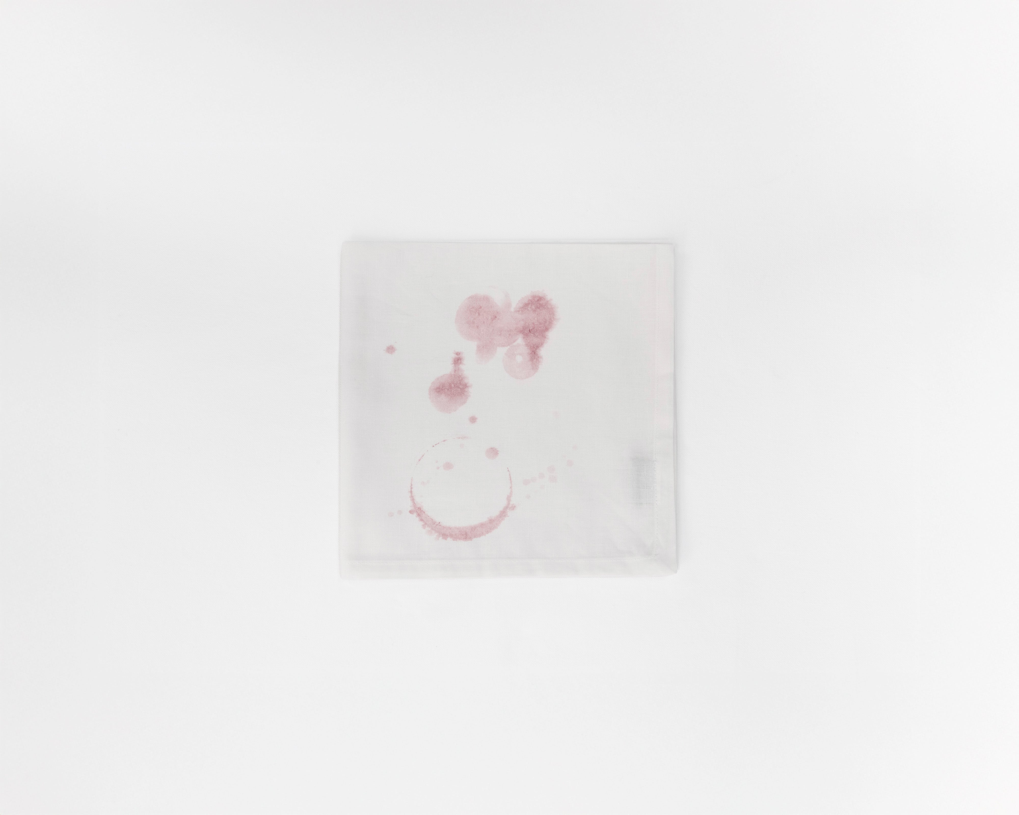 A set of eight napkins, each bearing a unique printed stain—designed to evolve through use. Stain invites you to embrace the beauty of the everyday mess: the smear of a berry, the trace of a glass, the quiet evidence of moments shared.